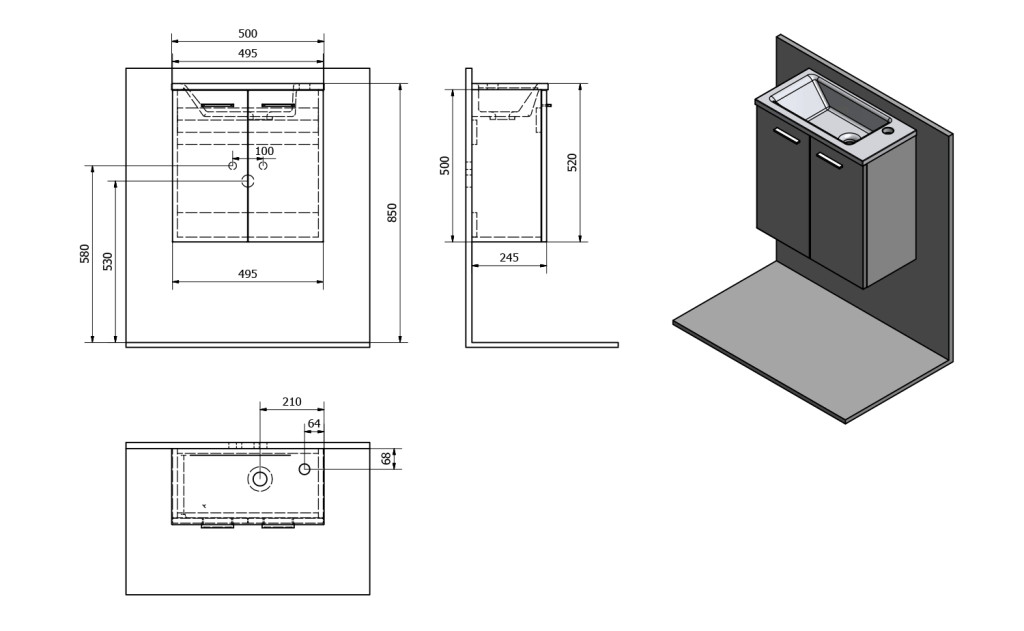 AQUALINE ZOJA Mosdótartó szekrény, 49x50x24,6cm, két ajtós (51047A)