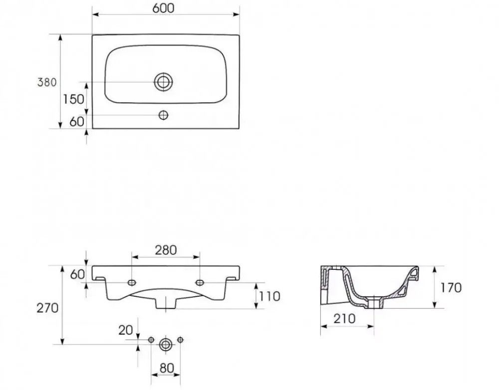 Cersanit Moduo 2 fiókos alsószekrény 60 süllyesztett kerámia mosdóval, fényes fehér S801-314-DSM