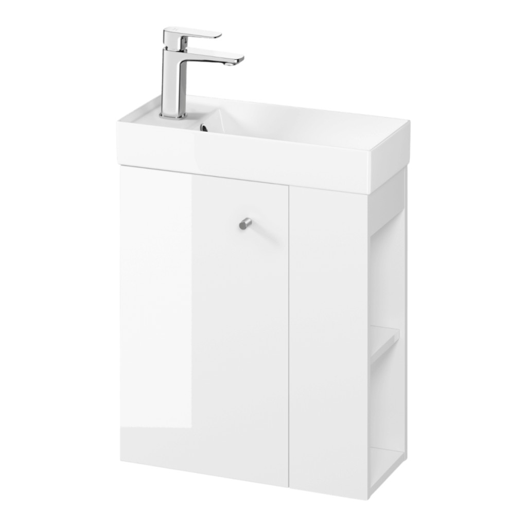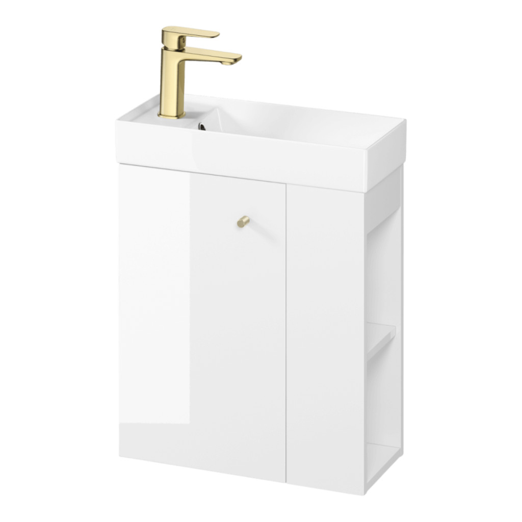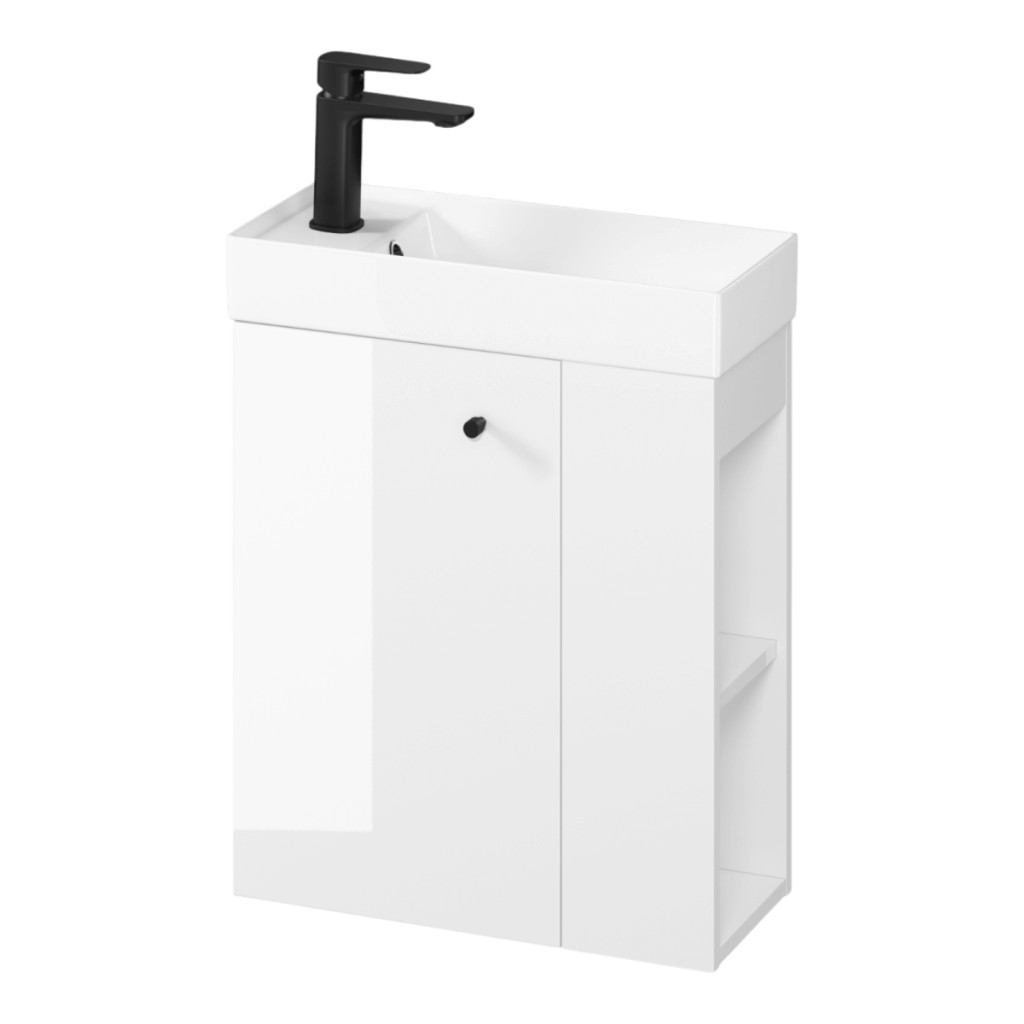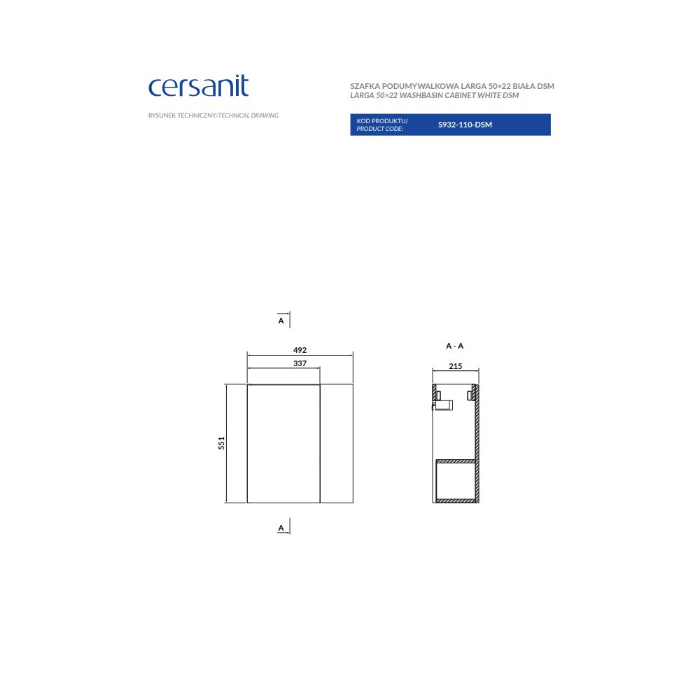 Lakkozott előlap és test faforgácslapból készült. Kényelmes, mart bútorgomb három színben érhető el (ezüst, arany, fekete), melyek külön megvásárolható meg. 2 nagy fiókkal rendelkezik, melyek soft close azaz csillapított záródásúak. A fiókbelső szürke színű. A forgácslap, amelyből a szekrény készült, rendelkezik az FSC MIX 70% SGSCH-COC-007574 tanúsítvánnyal. A termék összeszerelt.
