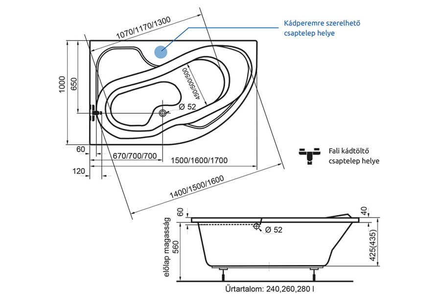 Szeretnénk felhívni figyelmét, hogy ez a csomag nem tartalmazza a kád leeresztőt, azt külön kell megrendelni.
