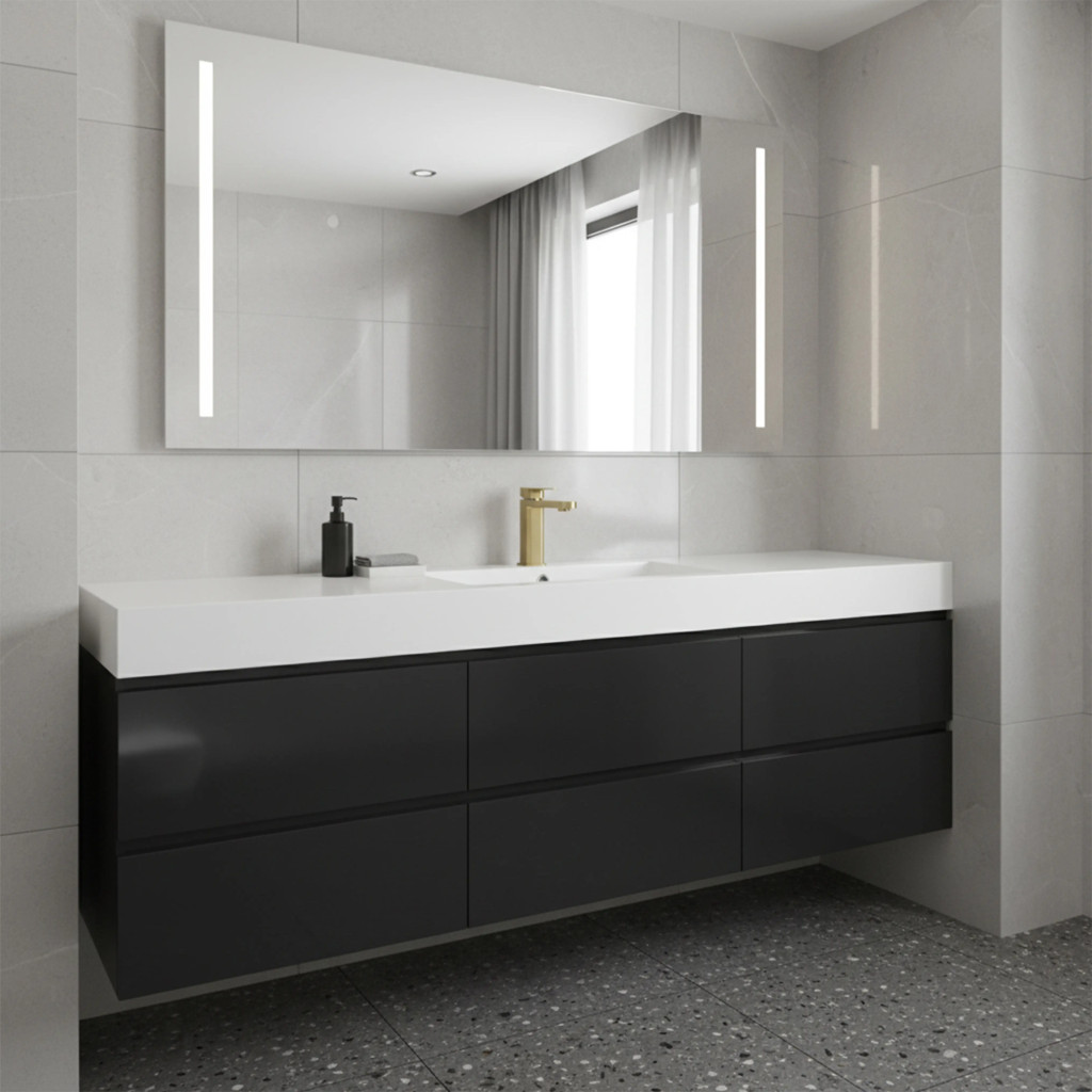 Emeld ki fürdőszobád modern jellegét a Rea Arvo alacsony mosdócsapteleppel, elegáns szálcsiszolt arany kivitelben. Ez a modell a geometrikus formák és a finom, matt fény tökéletes kombinációja, amely remekül illik a modern enteriőrökhöz. Az alacsony kialakítás a funkcionalitást és az esztétikus illeszkedést szolgálja a standard mosdókhoz.