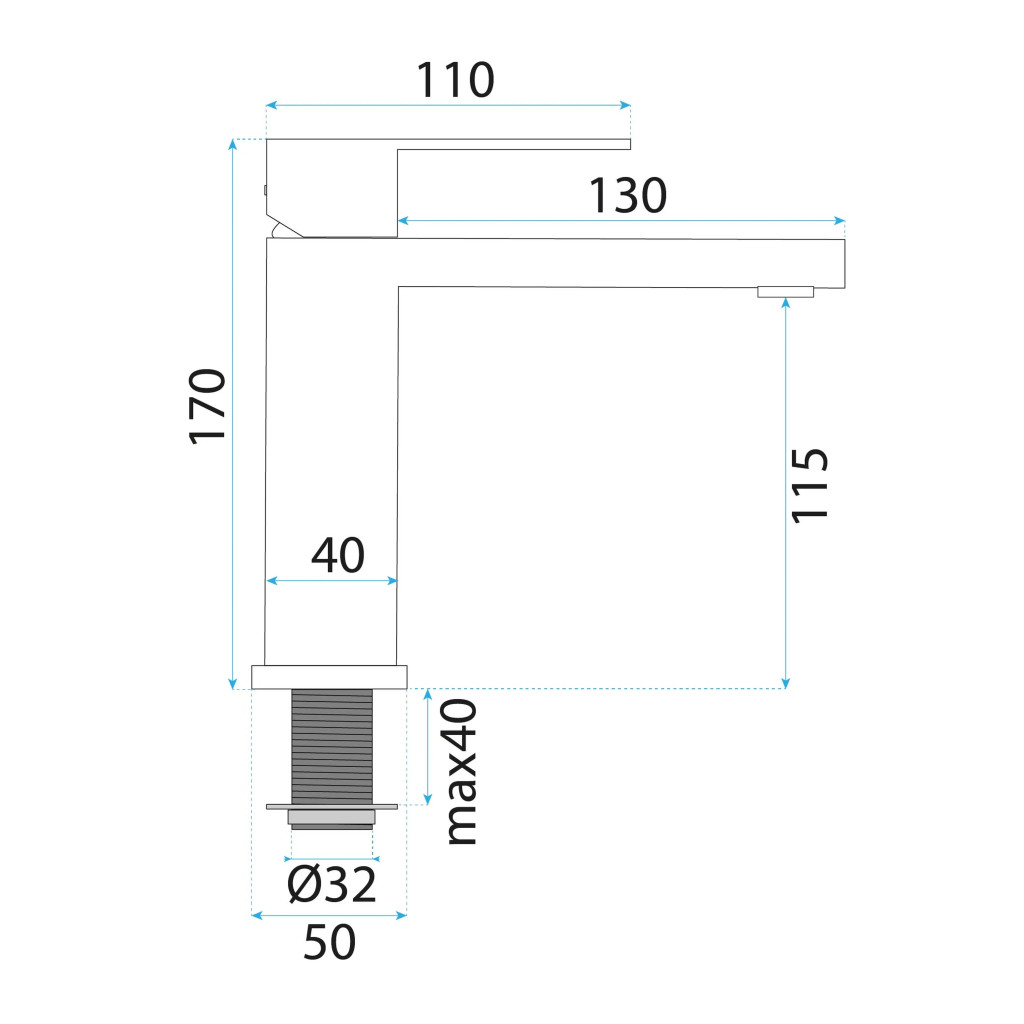 - Alacsony kialakítás – mosdóra vagy pultra szerelhető csaptelep, ideális süllyesztett és bútor-mosdókhoz.