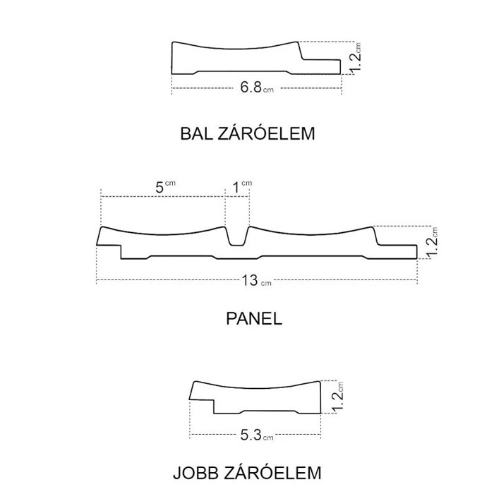 teljes szélesség x hosszúság x mélység (cm): 13 x 270 x 1,2
