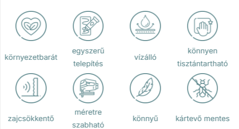 Teljes mértékben vízálló, medence térben és vizes helyiségekben is alkalmazható. Bordázott felületének köszönhetően gátolja a vízhangot és csökkenti a zajt.
