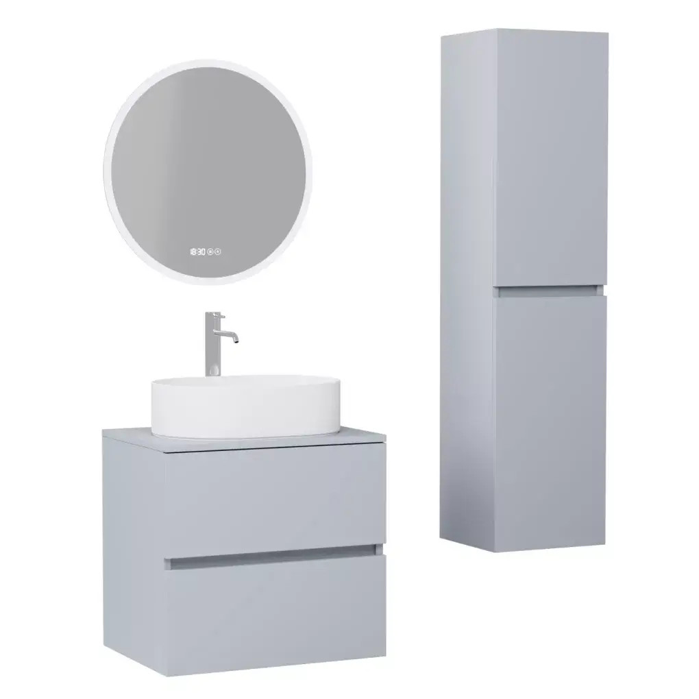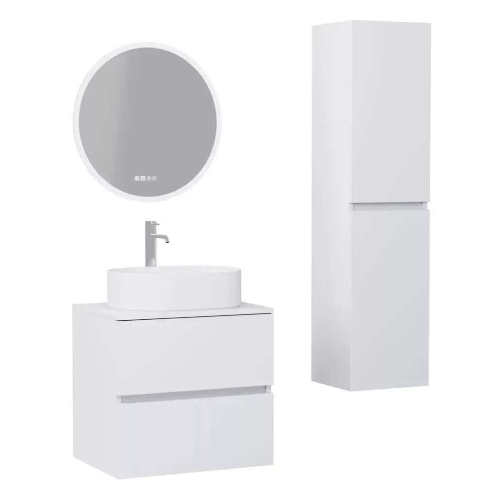 Az Aria bútor család szettben is kapható. A mosdószekrény hozzáillő tükörrel és magas szekrénnyel kiváló komplett fürdőszoba bútor szett lehet bármilyen fürdőszobába.