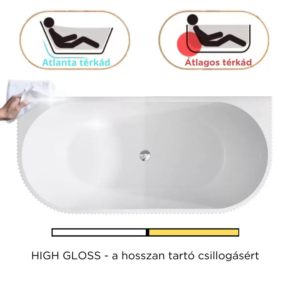Az ergonomikus kialakításnak köszönhetően a térben álló kád igyekszik biztosítani hosszú távon is a benne fekvő személy kényelmét, így hozzájárulva az egészség megőrzéséhez.