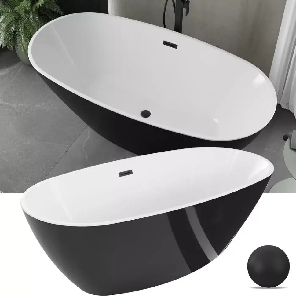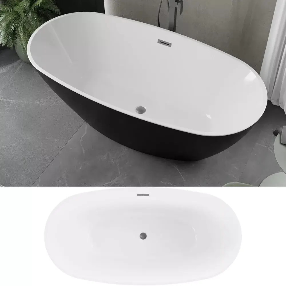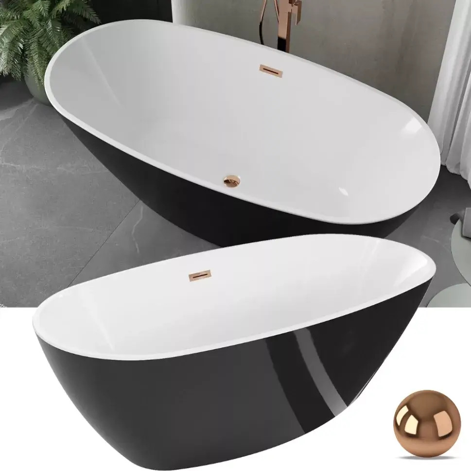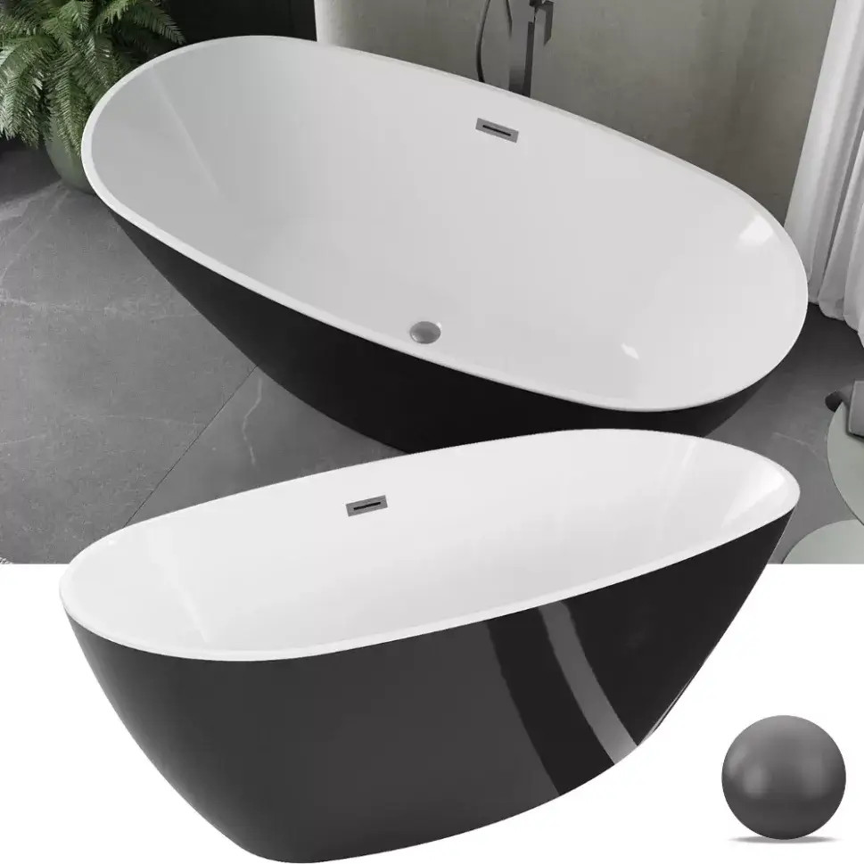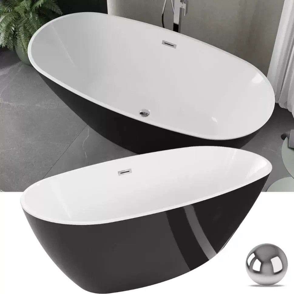 Aurora Black&White ovális térben álló akril kád, 170 cm hosszú, fényes króm elemekkel