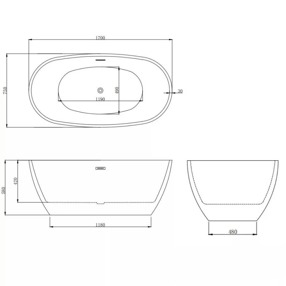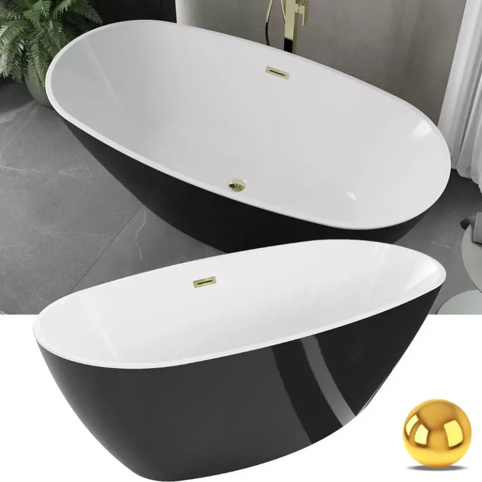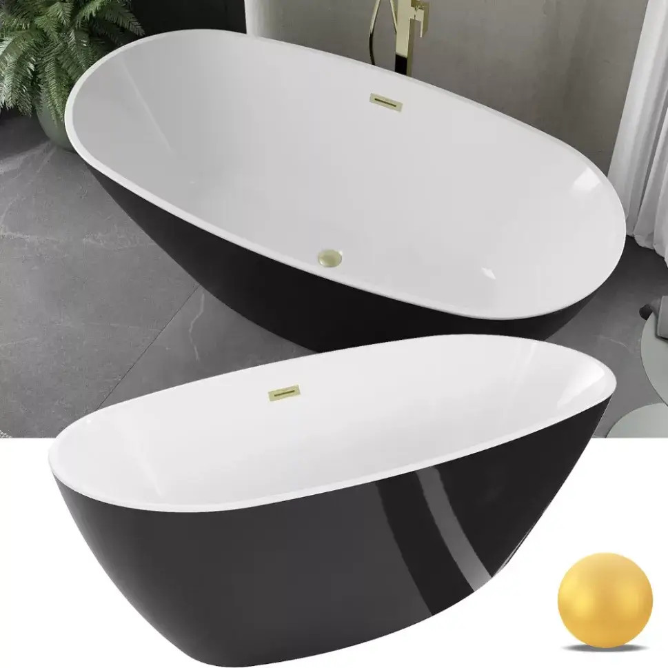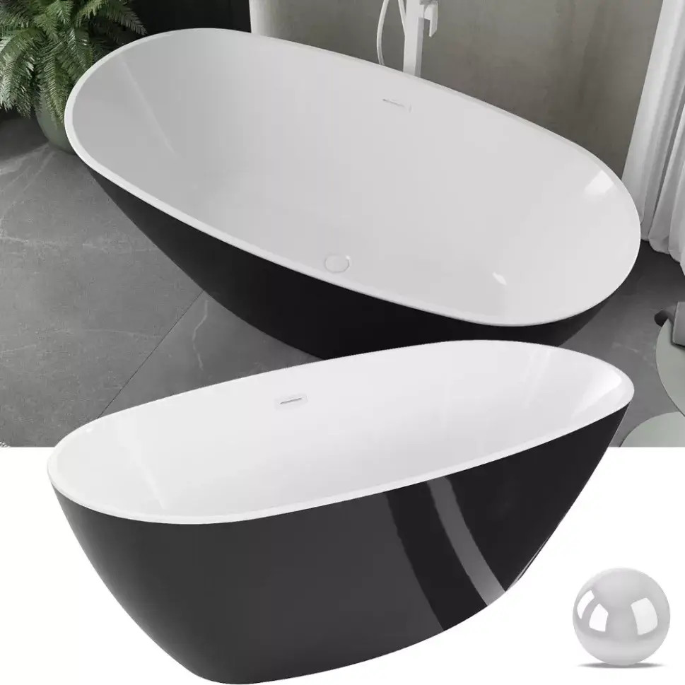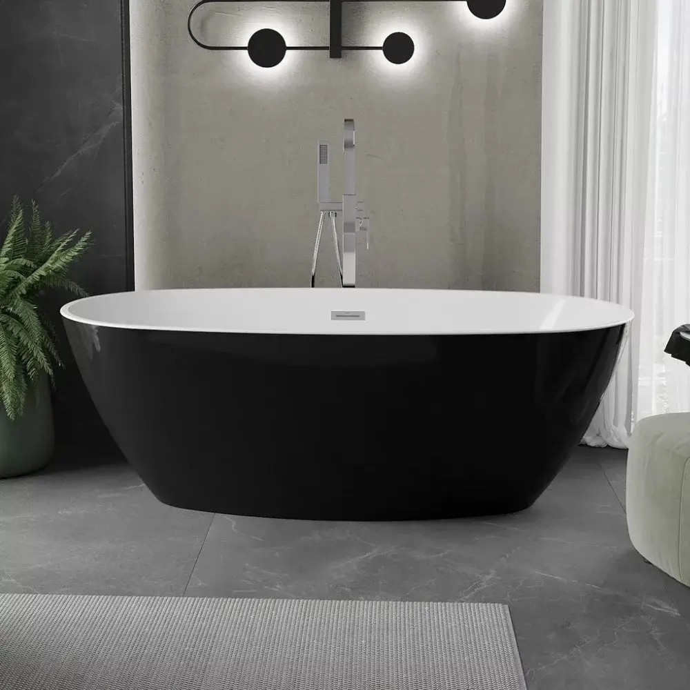 Aurora Black&White ovális térben álló akril kád, 170 cm hosszú, fényes króm elemekkel