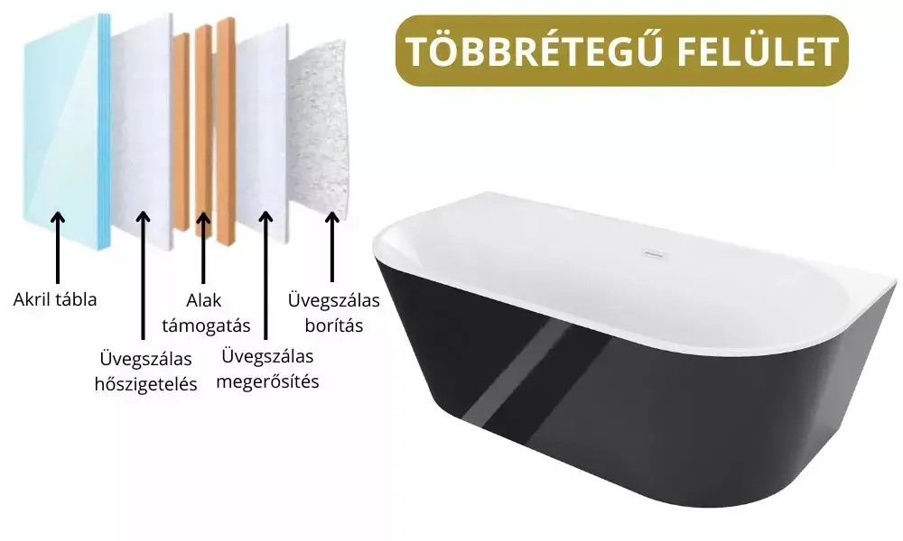 A fürdőkád műgyanta-üvegszálas erősítéssel készítik gyártáskor, aminek köszönhetően rendkívüli hőszigetelő képességgel rendelkezik. Ennek nagy előnye, hogy nem hűti el a vizet a kád felülete, így garantáljuk a hosszan tartó fürdőzést.