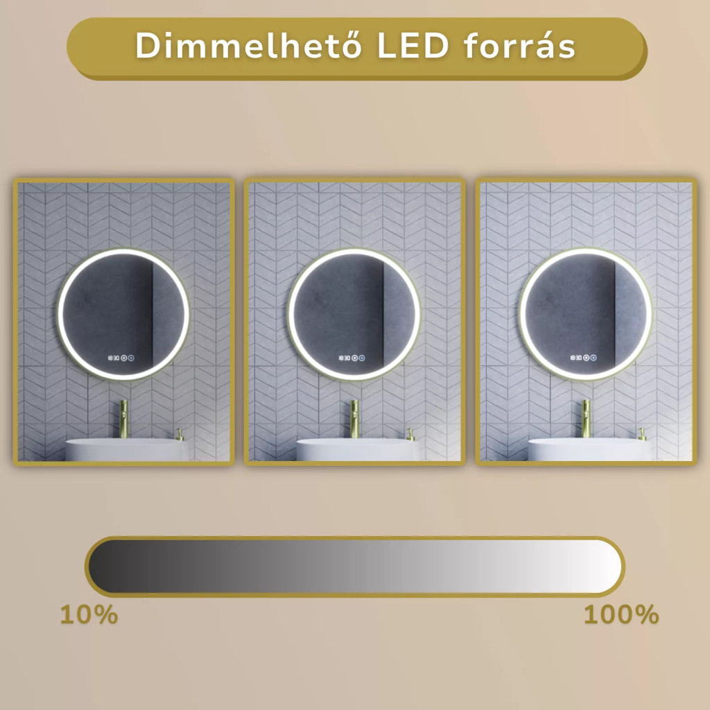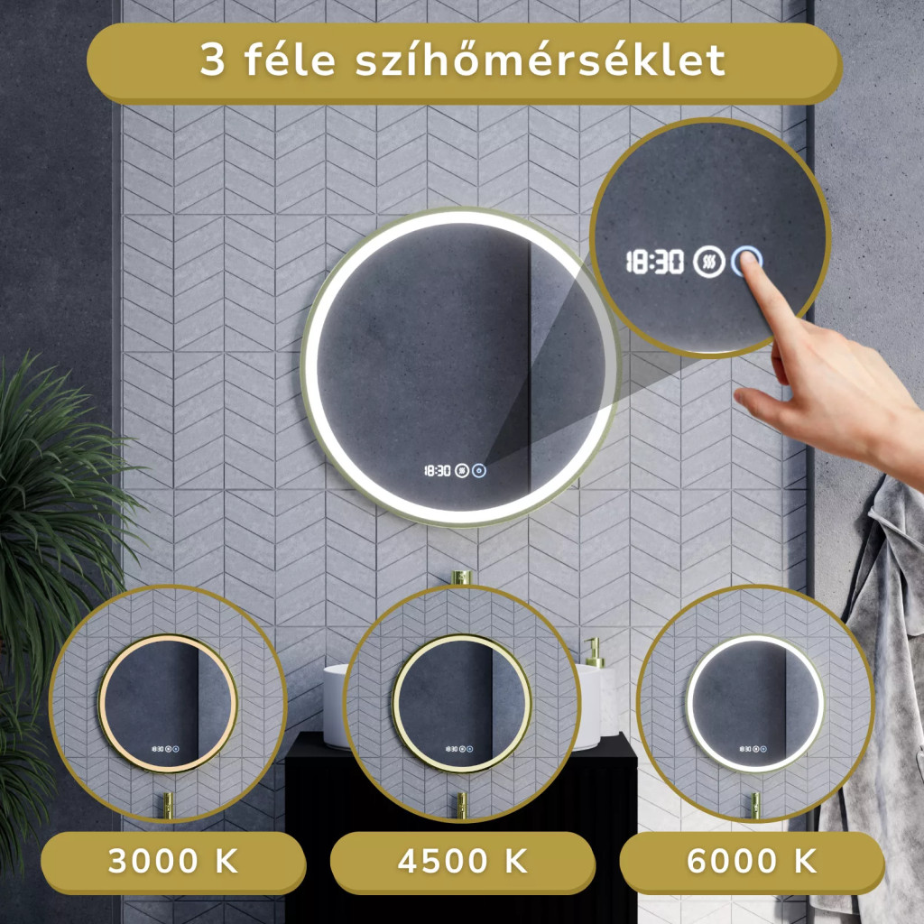 A tükör LED világítással rendelkezik, amely 3 féle színhőmérsékletet biztosít: meleg, semleges és hideg fehér.