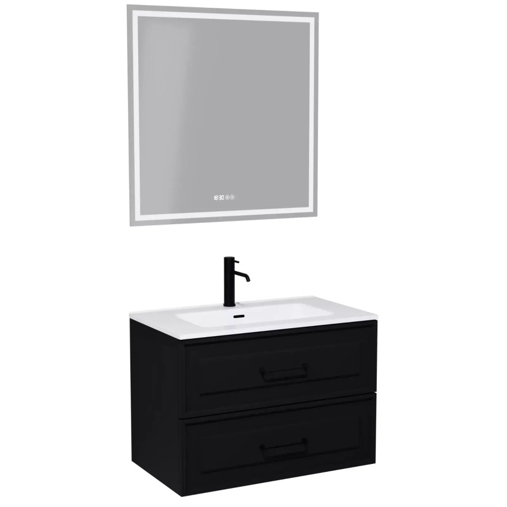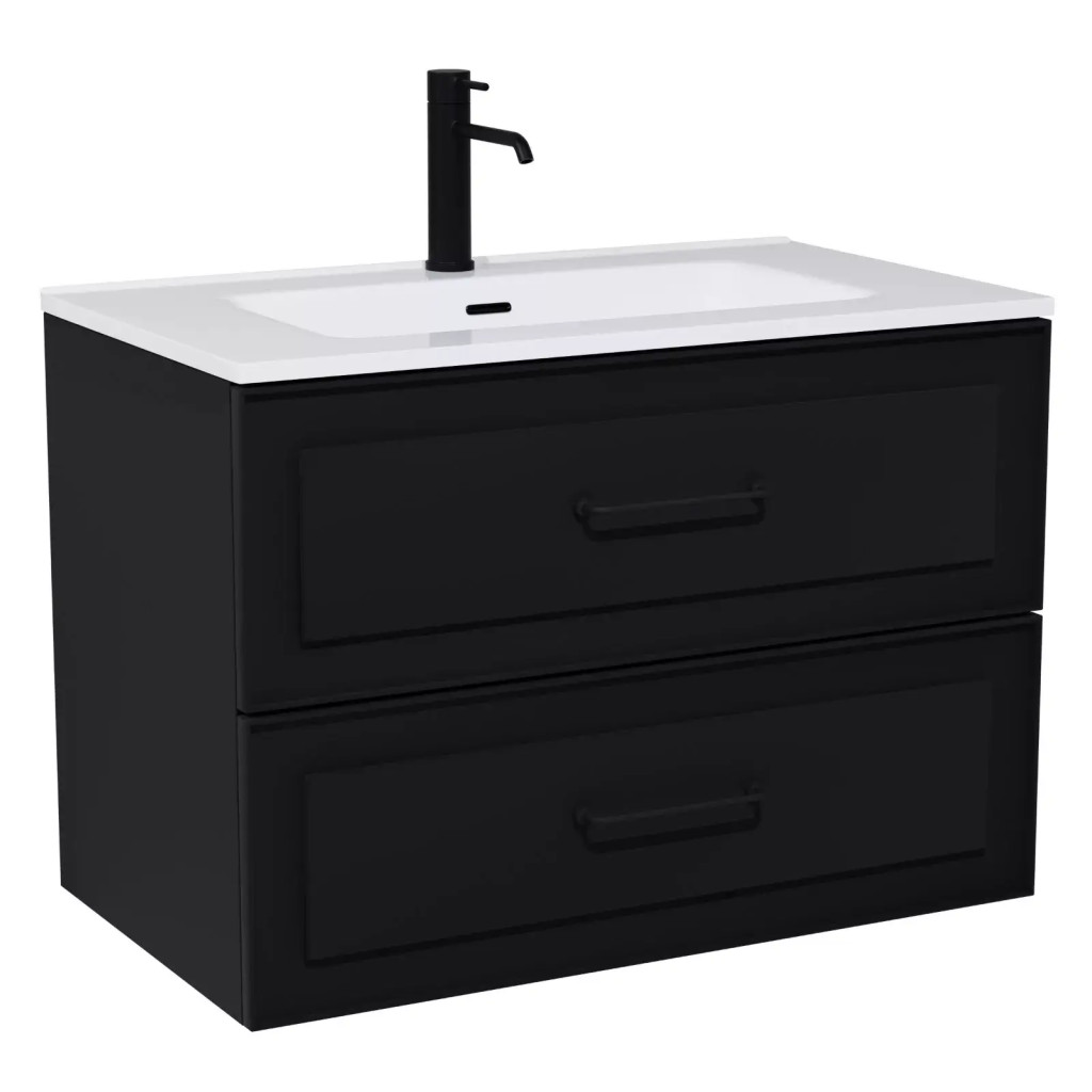Monza Matt Black 60 komplett fürdőszoba bútor, matt fekete fogantyúkkal
