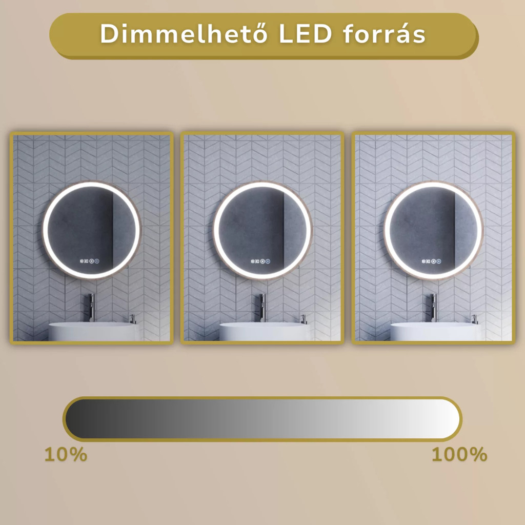 - Tükör funkciók: Érintés kapcsoló, digitális óra, páramentesítő fűtés