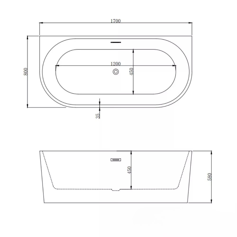 Florida Black félszabadonálló akril, 170 cm hosszú, fényes króm elemekkel