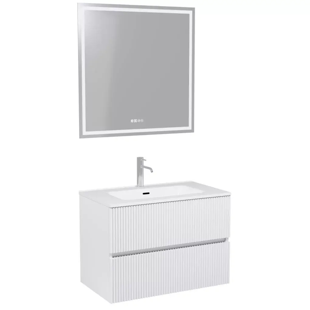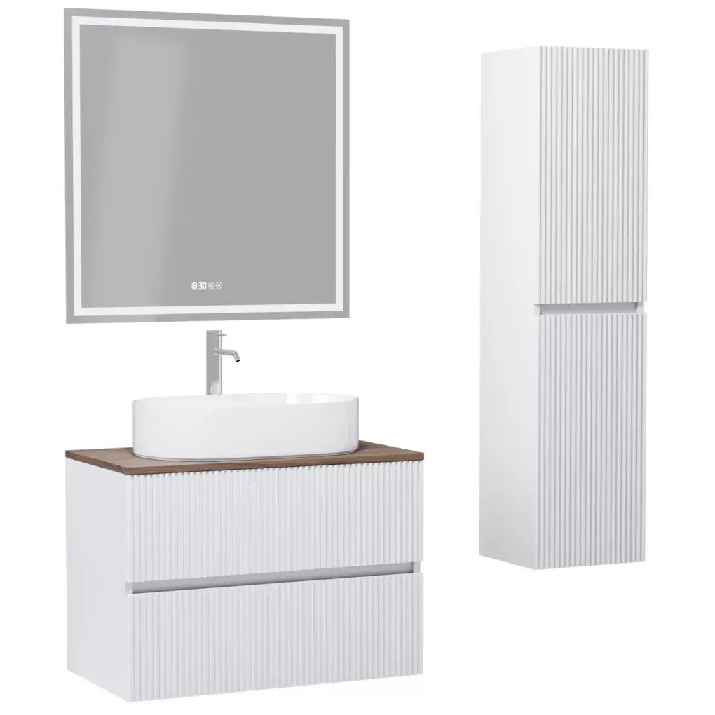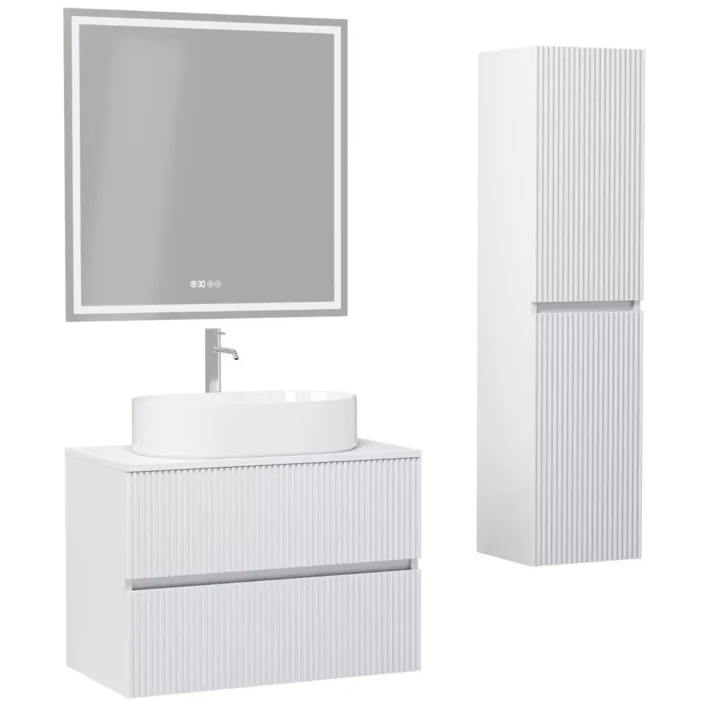 Az Aria bútor család szettben is kapható. A mosdószekrény hozzáillő tükörrel és magas szekrénnyel kiváló komplett fürdőszoba bútor szett lehet bármilyen fürdőszobába.