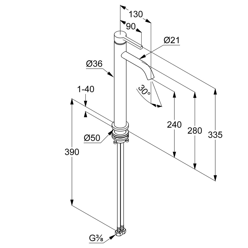 Magasított mosdó csaptelep