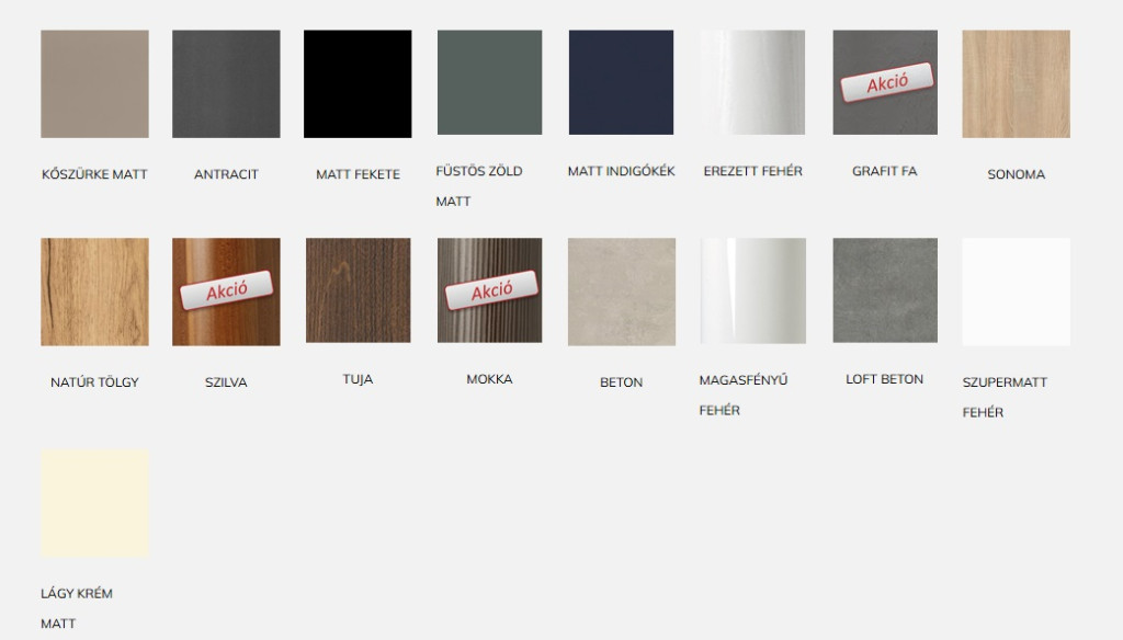 -Korpusz és front : Vákuumpréselt MDF és laminált lapok