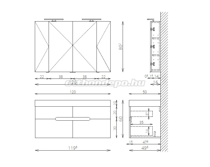 A tükör nem tartozéka az alsószekrénynek. Külön rendelhető!