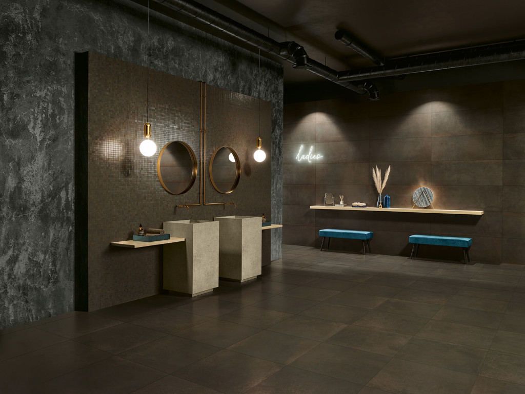 2. Metál hatású fürdőszoba csempe