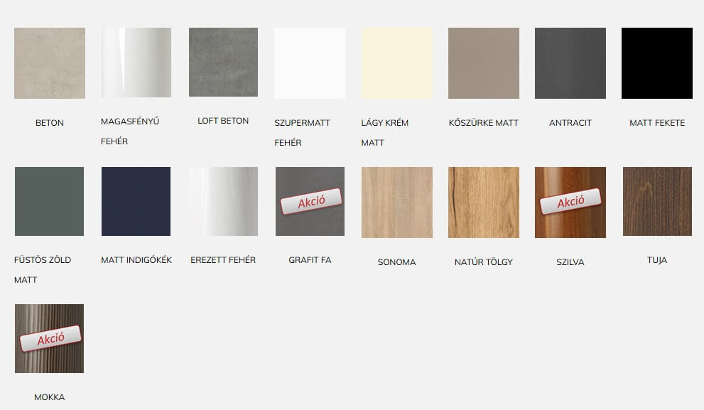 -Korpusz és front : Vákuumpréselt MDF és laminált lapok