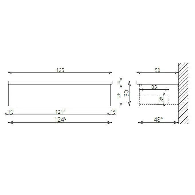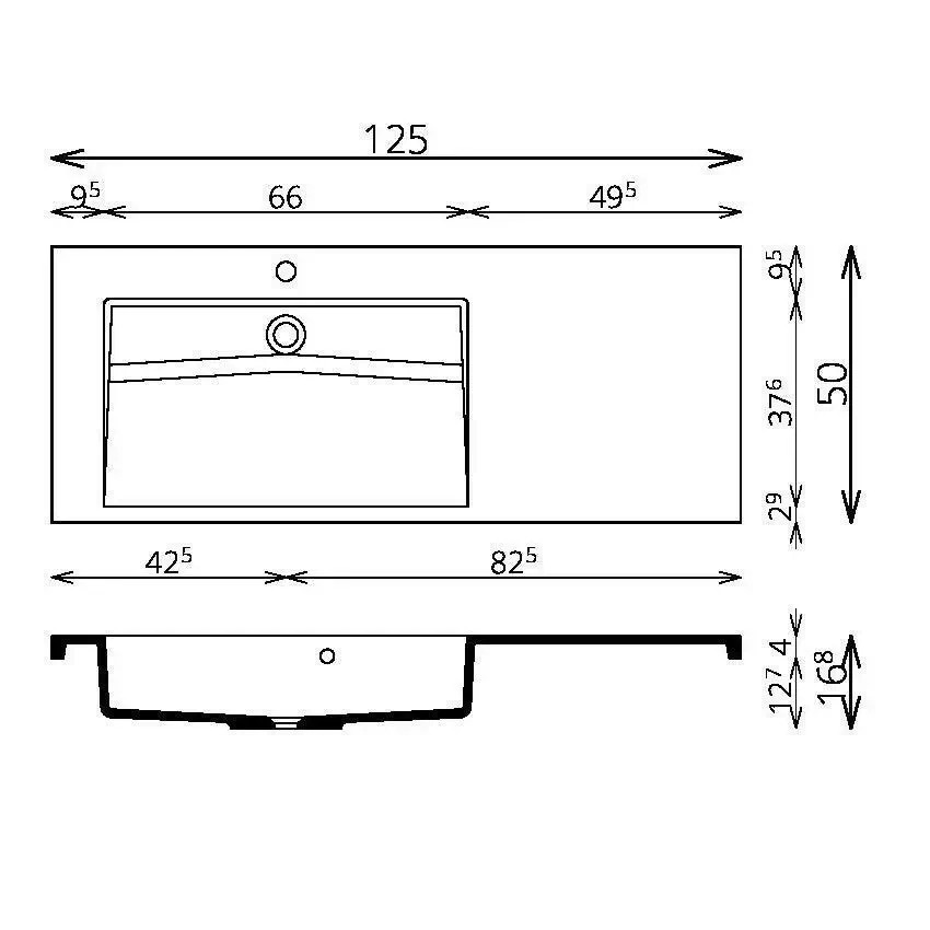 - Alsó szekrény szélessége mosdóval együtt: 125 cm
