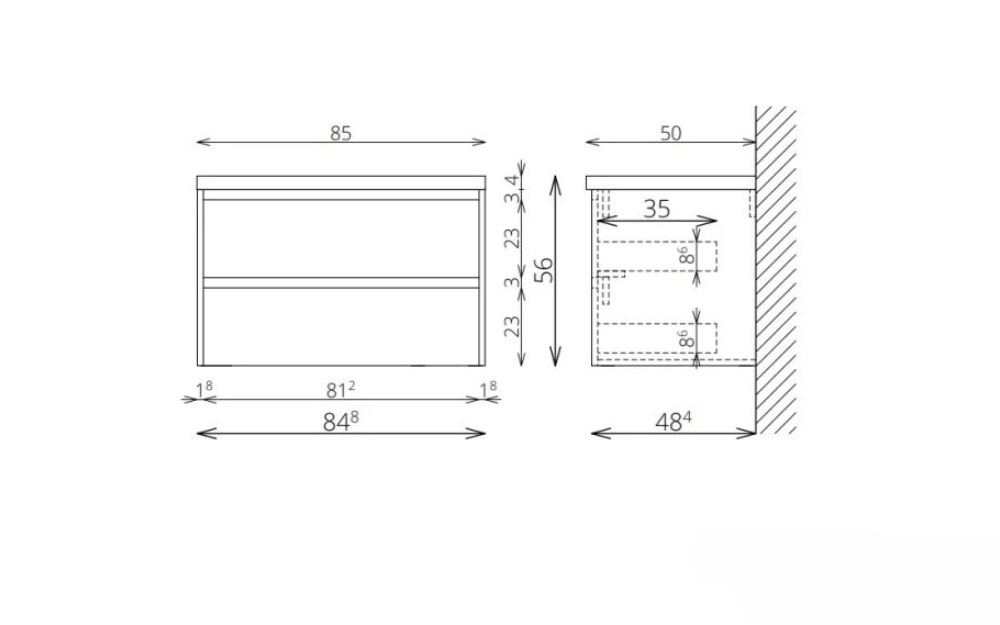 Tboss Infini 85 2 fiókos alsószekrény mosdóval