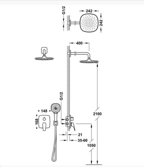 • Esőztetős fejzuhany mérete: 242x242 mm