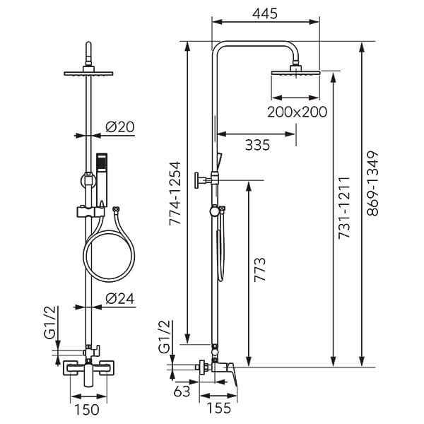 • felső csatlakozású fejzuhany és kézizuhany G1/2