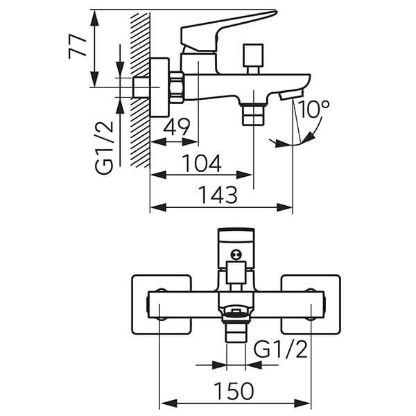• Z-idom G1/2, kiállások közti távolság 150 +/- 20 mm