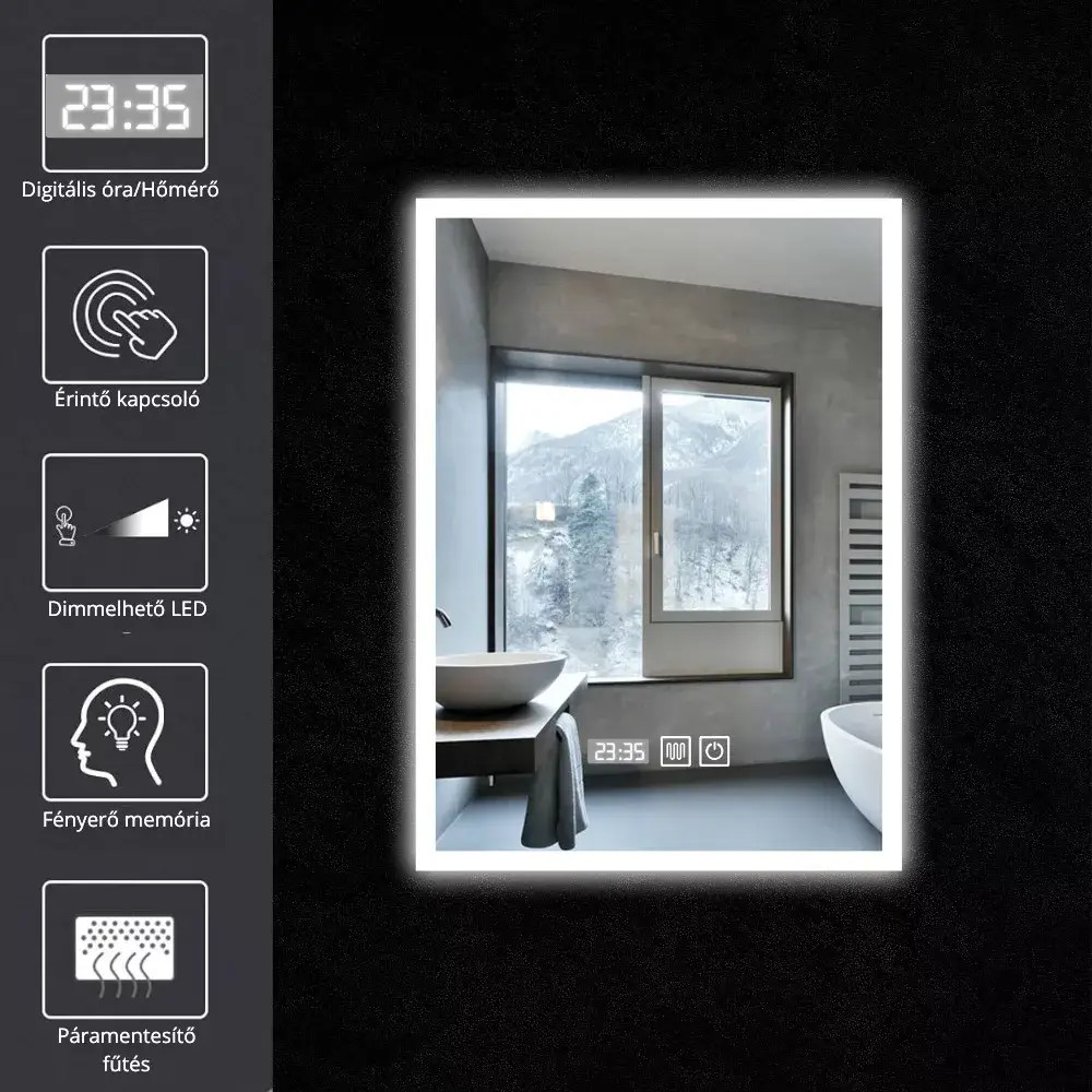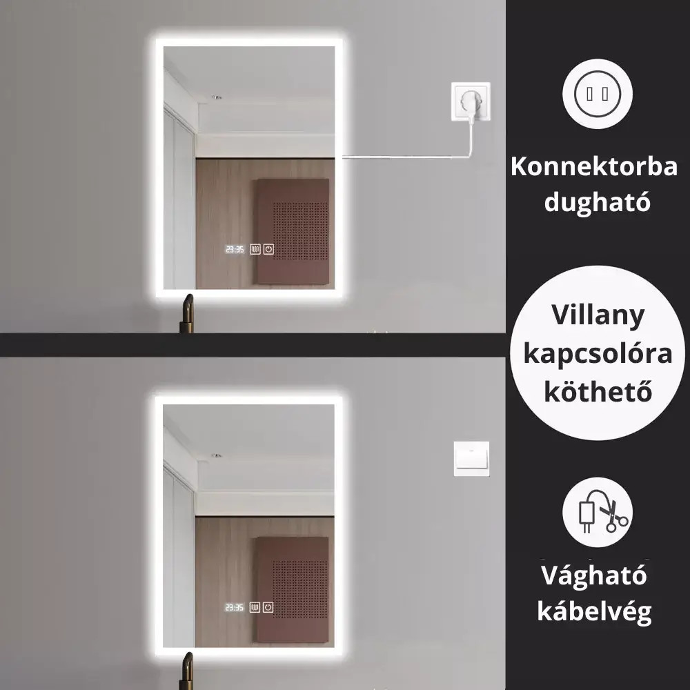 A tükör páramentesítő funkciója biztosítja, hogy a fürdőszoba használat során a keletkező párát eltávolítsa a tükör felületéről a teljes körű használat érdekében.