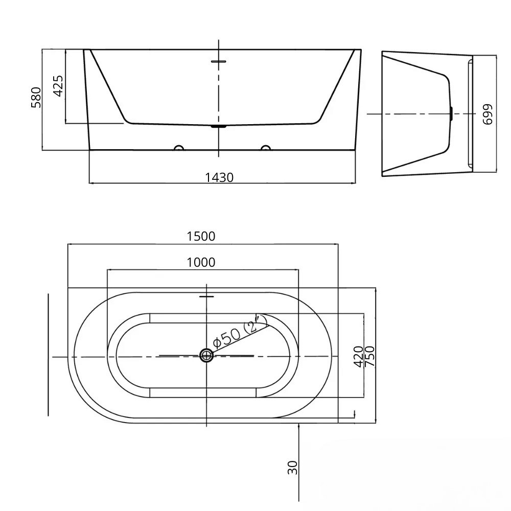 Az előre felszerelt rögzítő lábszettnek köszönhetően a szabadon álló kád 4 helyen kerül alátámasztásra, amely biztosítja a nagyfokú teherbíró képességet.