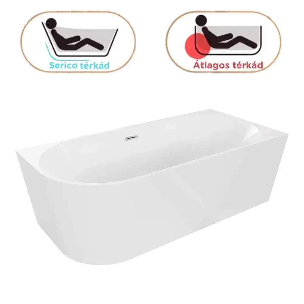 Az ergonomikus kialakításnak köszönhetően a térben álló kád igyekszik biztosítani hosszú távon is a benne fekvő személy kényelmét, így hozzájárulva az egészség megőrzéséhez.