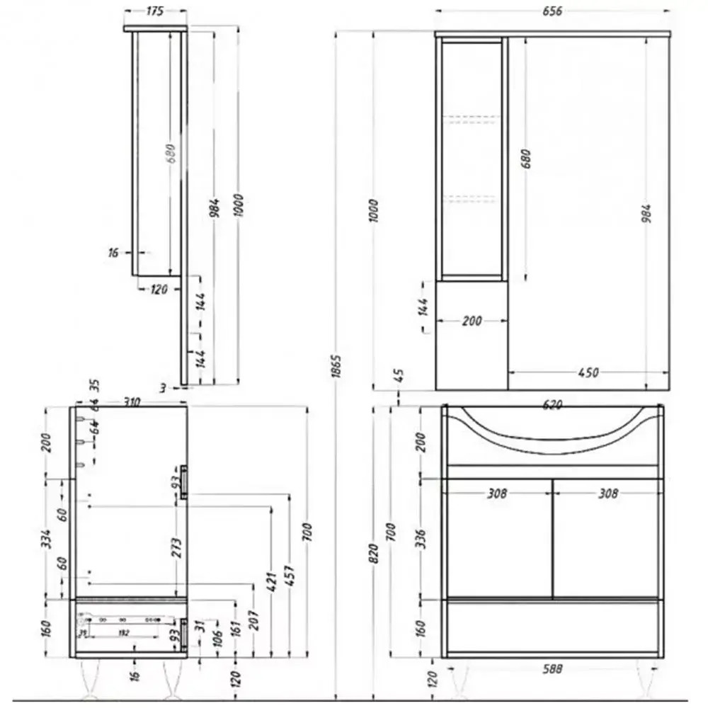 • Felső tükrös elem: 100x65,6x17,5 cm