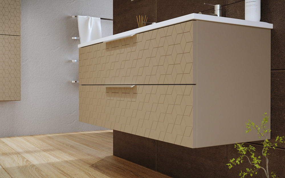 A 3D frontok megjelenése új lendületet adott a modern fürdőszobadizájnnak. Ezek a bútorok nem egyszerű, sík felületű ajtókkal és fiókelőkkel készülnek, hanem olyan térhatású mintázattal, amely valódi mélységet ad a felületnek. Barázdák, finom vonalak, geometrikus vagy organikus marások jelennek meg rajtuk – mind-mind olyan részletek, amelyek elegáns fény-árnyék játékot hoznak létre, és még egy kisebb fürdőszobát is exkluzívabbá tesznek.